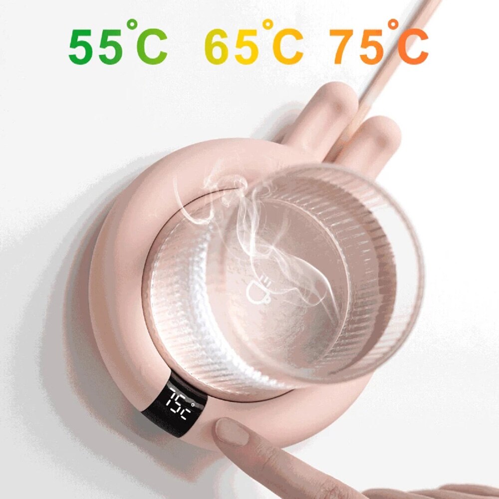 Sua base de encaixe é adequado pra quase todos os tipos de copos, xícaras , canecas existentes. Possui uma Tela de led bem visível com o demonstrador de temperatura tendo uma visualização ótima da temperatura da sua bebida. A sua temperatura é ajustável em 3 graus (55ºC / 65ºC / 75ºC ) mantendo o seu aquecimento constante nesses três níveis.